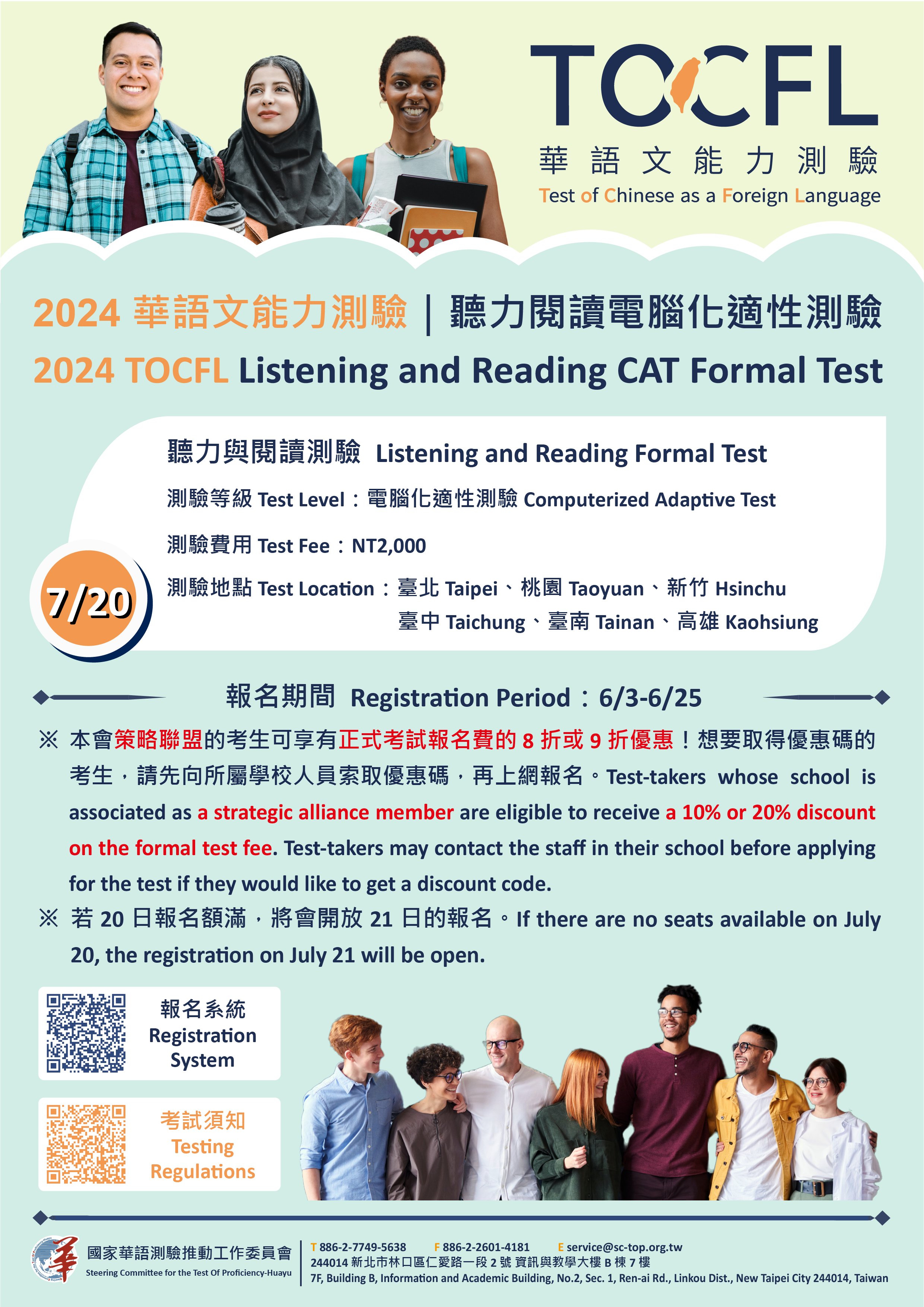 | 七、 | 優惠訊息:為華測會策略聯盟單位,所屬外籍人士可享九折優惠。 |